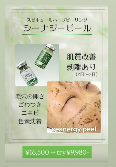 シーナジーピール(Seanergy Peel)は、韓国発の天然海藻由来の微細針(スピキュール)を使用した「剥離(はくり)あり」のハーブピーリングです。